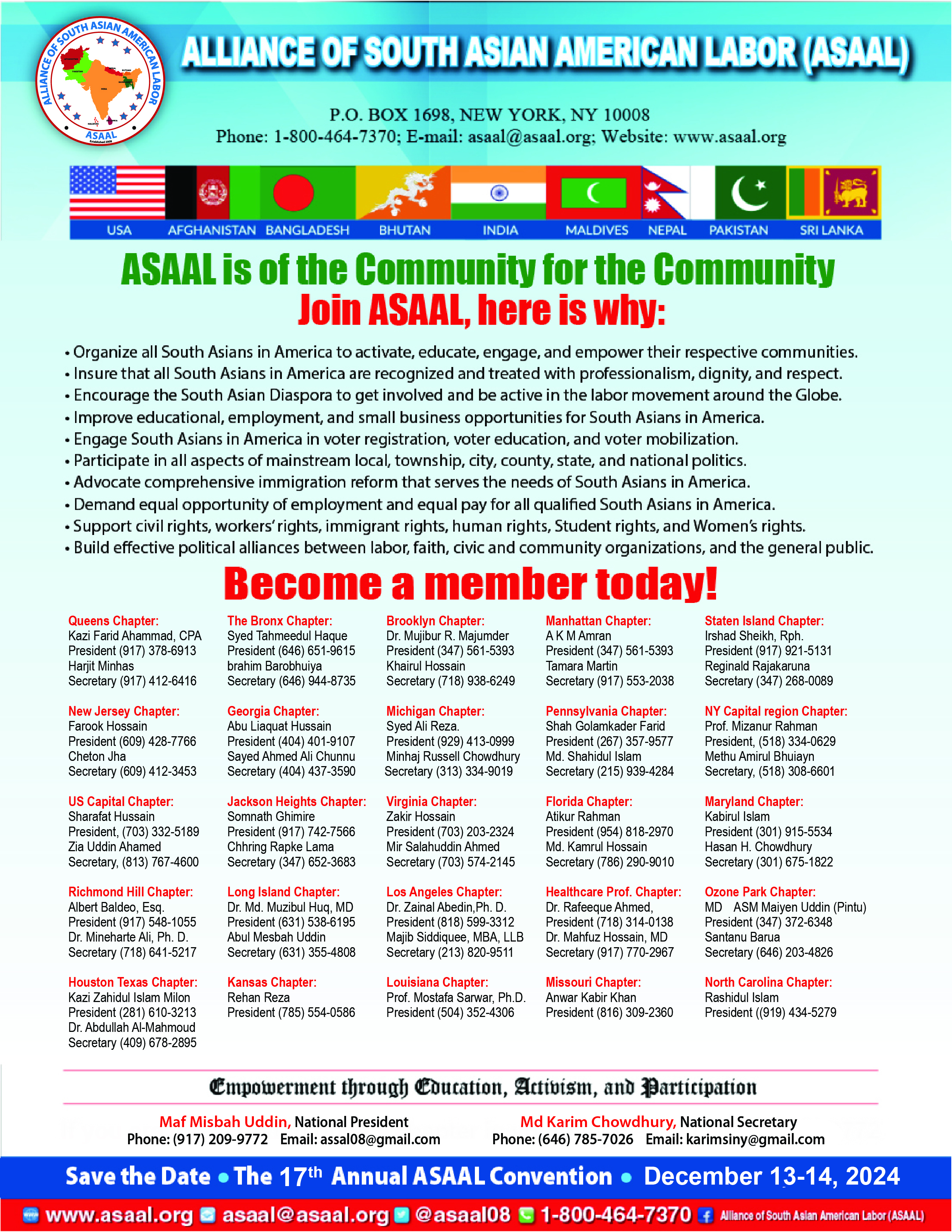 ASAAL realizes that without an independent voice unique to the needs of the South Asian American the